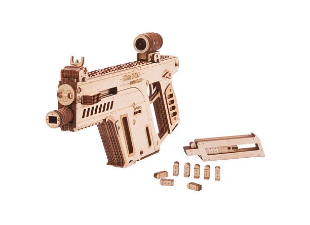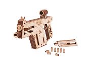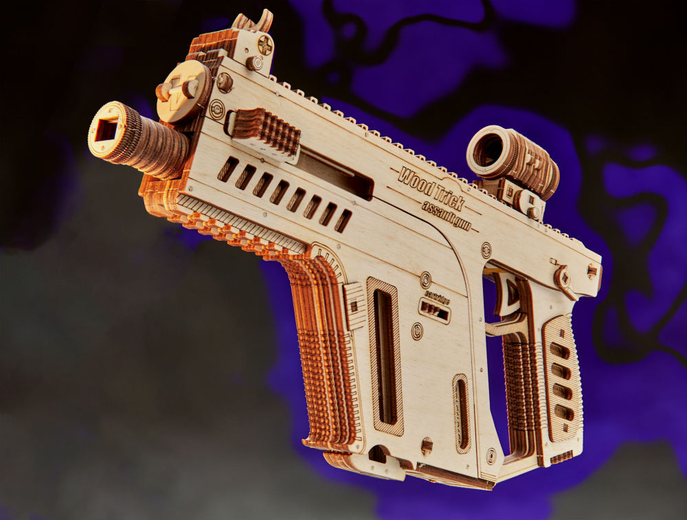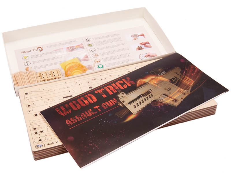 Все механические модели Wood Trick собираются из разнообразных деталей (экологически чистая фанера), которые «выдавливаются» из листов в наборе. При сборке ни ножницы, ни клей не нужны. Один из предложенных производителем вариантов сборки и стыковки деталей является запатентованным.
