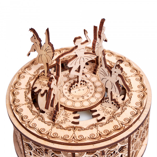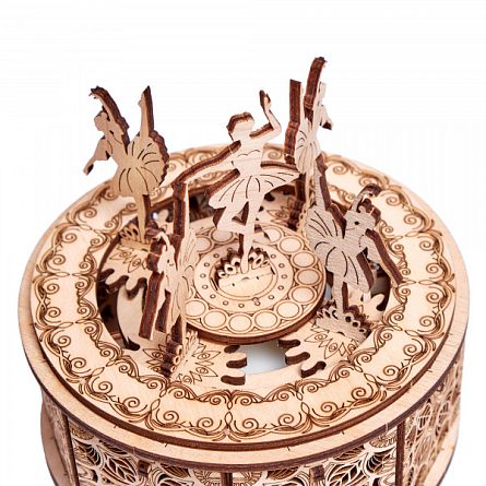 Все механические модели Wood Trick собираются из разнообразных деталей (экологически чистая фанера), которые «выдавливаются» из листов в наборе. При сборке ни ножницы, ни клей не нужны. Один из предложенных производителем вариантов сборки и стыковки деталей является запатентованным.