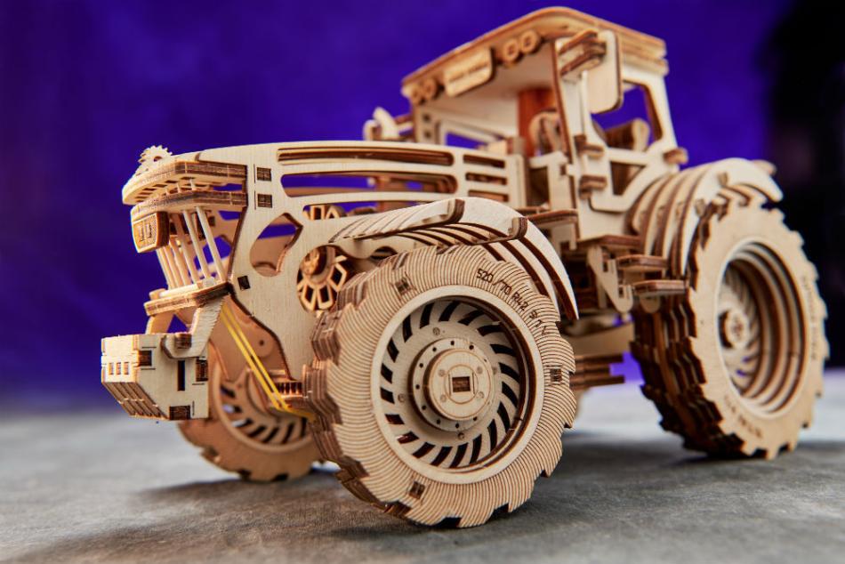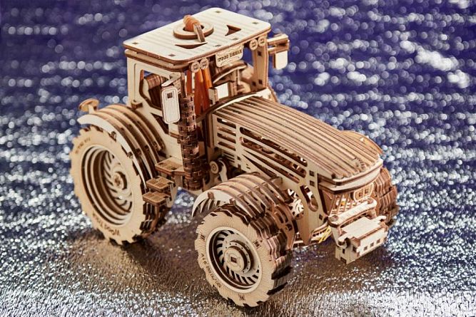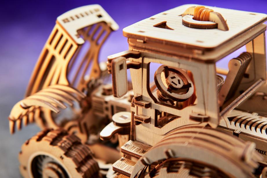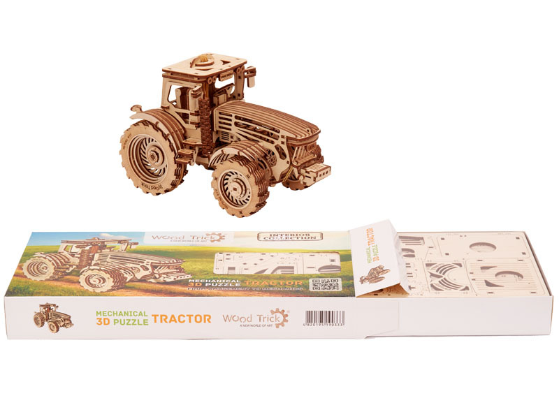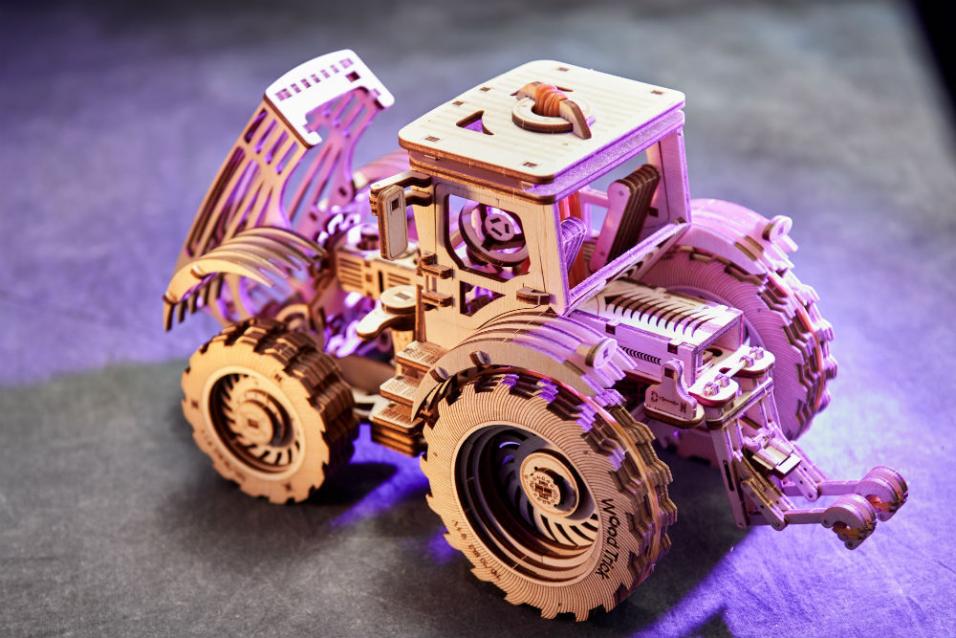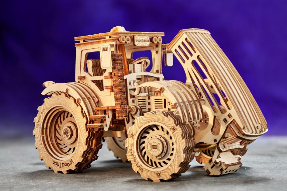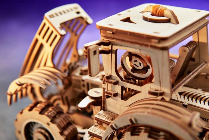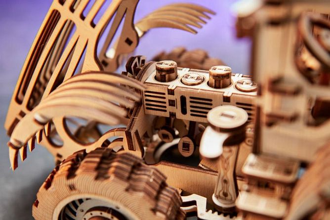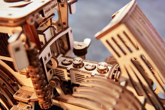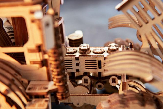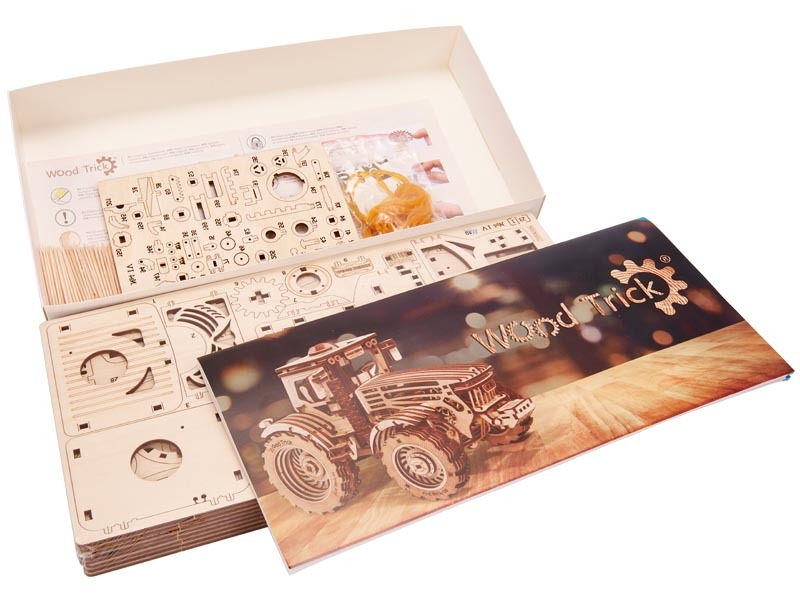 Все механические модели Wood Trick собираются из разнообразных деталей (экологически чистая фанера), которые «выдавливаются» из листов в наборе. При сборке ни ножницы, ни клей не нужны. Один из предложенных производителем вариантов сборки и стыковки деталей является запатентованным.