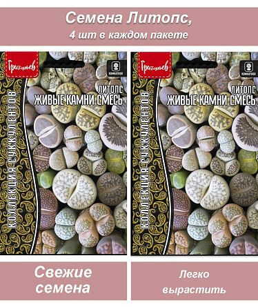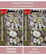 Набор семян суккулентов, живые камни (Литопсы). Литопс - комнатное растение, листовые суккуленты из семейства Мезембриантемовые. Литопсы легко размножаются семенами. Посев производят в смесь торфа и песка, сверху чуть присыпая песком, выдерживая температуру 20°C. Необходимо обязательно обеззараживать землю перед посадкой, литопсы очень чувствительны к грибковым поражениям (можно в духовке (самый надежный способ), можно пролить, например, раствором фитоспортина или аналогичного препарата. Семена литопса, как и большинства других суккулентов - очень мелкие, практически как пыль, это нормально для данного цветка.