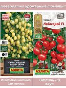 Два совершенно потрясающих, безумно урожайных томата! Попробуйте их один раз - и вы будете выращивать их каждый год. Сумасшедшие вишни Барри - среднеранний сорт от знаменитого американского селекционера Брэда Гейтса. Получил мировую известность под названием Barry’sCrazyCherry. Рекомендуется для открытого и защищенного грунта. Растения индетерминантные, в теплице высотой около 2 м, выглядят потрясающе и очень урожайные. Кисти, словно гроздья винограда, объемные и красивые, с огромным количеством ароматных и сладких черри, массой 20-25 г. Сорт отлично подходит для употребления в свежем виде, украшения блюд и цельноплодного консервирования, особенно красиво выглядит в сочетании с другими разноцветными черри. Урожайность в теплице – 8-10 кг/м2. Небоскреб - настоящий конвейер по производству томатов! Спелые плоды с этих мощных индетерминантных растений высотой 1,8-2 м снимают спустя 105-110 дней после появления всходов. Помидоры массой 130-150 г собраны в кисти по 7-10 штук. Насыщенно-красные, плотные, с толстыми стенками томаты не имеют зеленого пятна у плодоножки. Они отлично транспортируются и длительное время хранятся. Гибрид умеренно устойчив к фузариозу, вершинной и корневой гнилям, бурой и бактериальной пятнистости листьев. В средней полосе рекомендуем выращивать в теплицах, в южных регионах – в О/Г. При хорошей агротехнике урожайность может достигать 12-18 кг/м. Семена томата сажают на рассаду в марте, посадка в грунт - в мае, когда земля прогреется до 15-17 градусов.