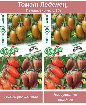 Набор семян томатов Леденец, 0,15 г в каждом пакете (по 0,05 г каждого сорта). Сорт томатов Леденец - новинка, настоящая гордость российской селекции. Отличается урожайностью, длительным плодоношением, невероятно сладкими томатами с изумительным вкусо. Растение высокорослое, мощное, индетерминантное, для теплиц и открытого грунта (в зависимости от региона). Данный томат - однозначно станет вашим любимцем, его обожают и взрослые, и дети. Семена томата сохраняют всхожесть до 10 лет, всходят легко и дружно.