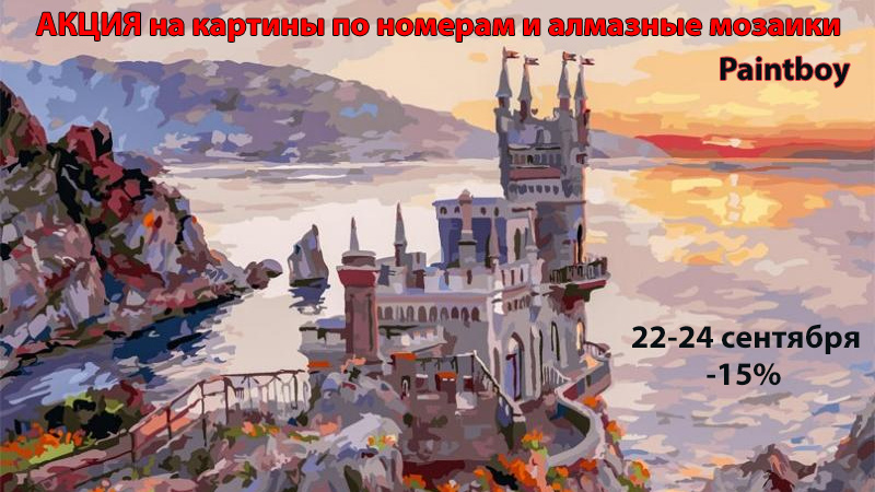 Не упустите момент, с 22 по 24 сентября действует скидка 15% на все картины по номерам и алмазные мозаики фирмы Paintboy.