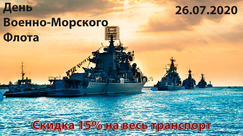 К дню Военно-Морского Флота объявляем скидку на все товары, относящиеся к транспорту.