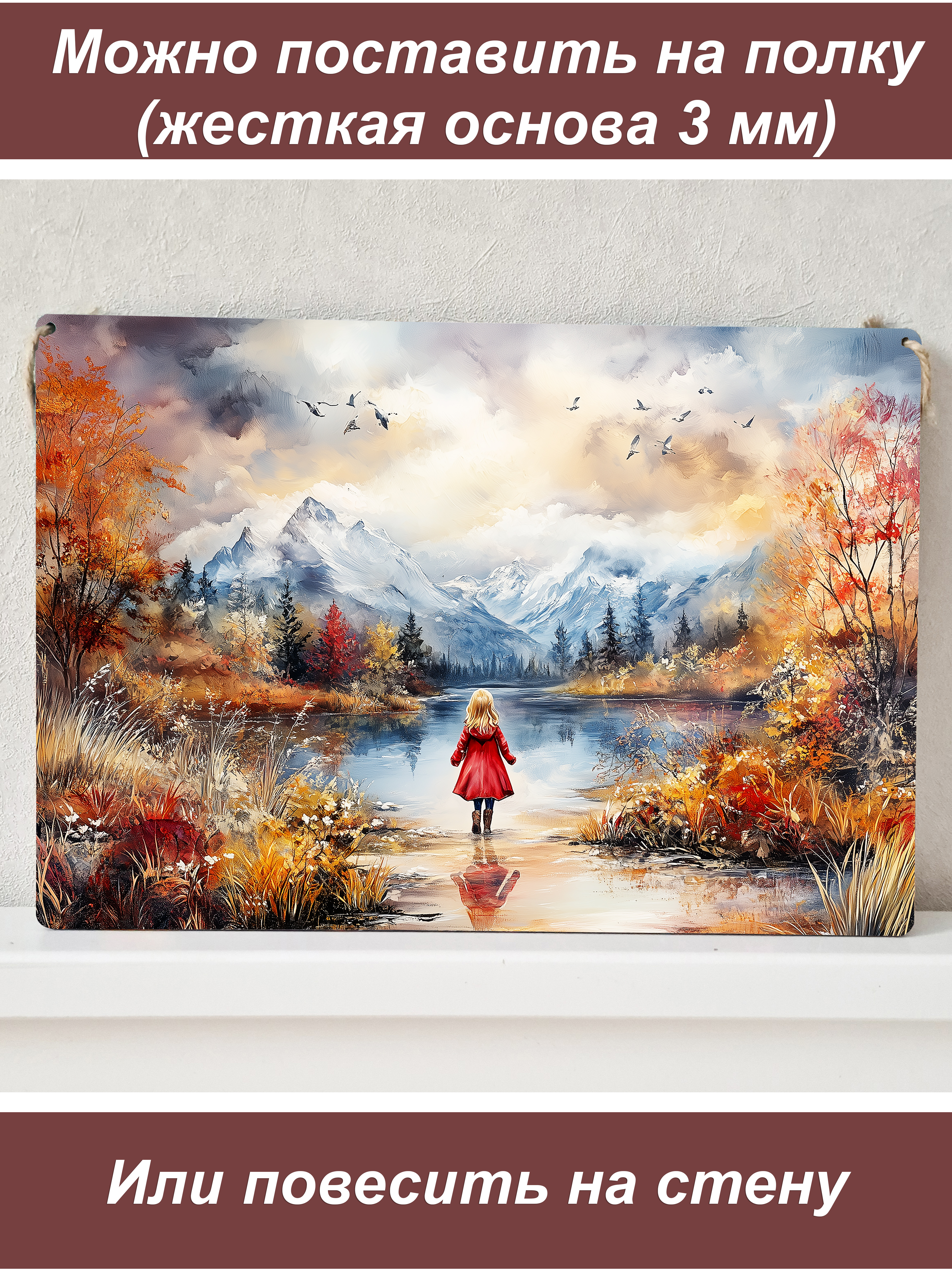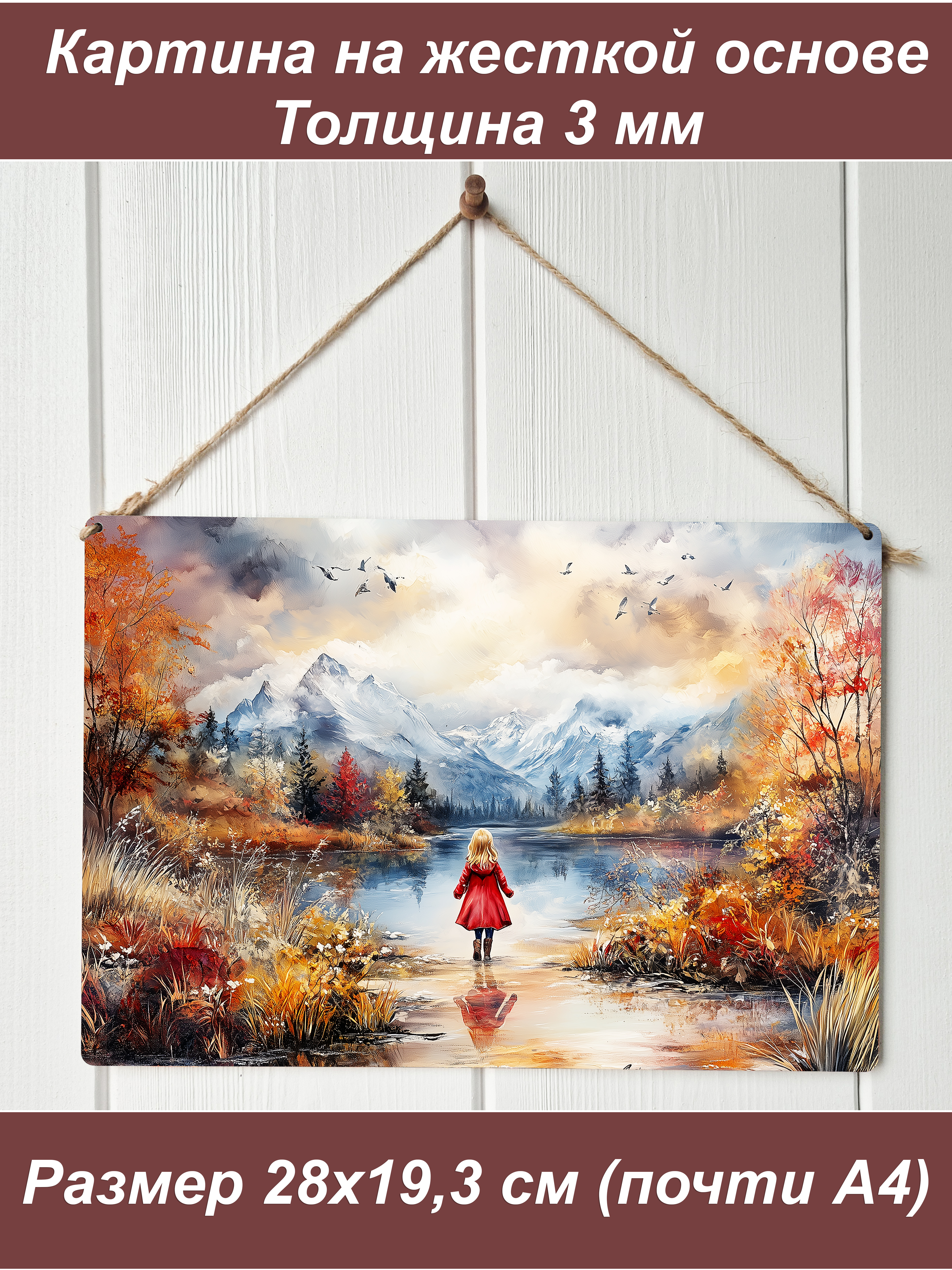 Стильные интерьерные картины на стену формата А4 – это идеальное решение для быстрого и эффектного обновления вашего интерьера. Декоративный постер напечатаны на жесткой основе – высококачественном ХДФ (оргалите), что придает изделию солидный вес, благородный вид и износостойкость. В отличие от обычных постеров на бумаге, эти панно не мнутся и не теряют форму. Не требует оформления в багет или поиска рамки: картина полностью готова к размещению на стене или на полке. Каждая картина небольшого размера (примерно А4) универсальна в размещении: вы можете повесить мини-панно на стену с помощью крепления (веревка) или просто поставить на полку, комод или рабочий стол. При желании можно крепить к стене, используя двусторонний скотч (в комплект не входит). В ассортименте представлены разнообразные сюжеты, которые впишутся в любой дизайн: Огромный выбор сюжетов! В ассортименте представлены тысячи изображений на любой вкус: Природа и пейзажи: величественные горы, безмятежные озера и реки, густые леса, бескрайние поля. Животные: реалистичные портреты собак, кошек, грациозных лошадей, благородных волков, а также трогательные щенки. Цветы и натюрморты: яркие пионы, нежные полевые цветы, сочные композиции для уюта на кухне или в гостиной. Морская тематика: штормовое море, закаты на побережье, парусники и романтика волн. Архитектура и уют: живописные коттеджи, деревенские домики, городские зарисовки. Фэнтези и магия: загадочные эльфы, могущественные драконы, прекрасные девушки в волшебных мирах. Такие постеры на жесткой основе станут отличным подарком или дополнением к любому интерьеру. Сочетайте несколько штук в коллаже для создания уникальной галереи на стене, можно легко создать триптих - в ассортименте достаточный выбор, чтобы подобрать декорации в одном стиле. "