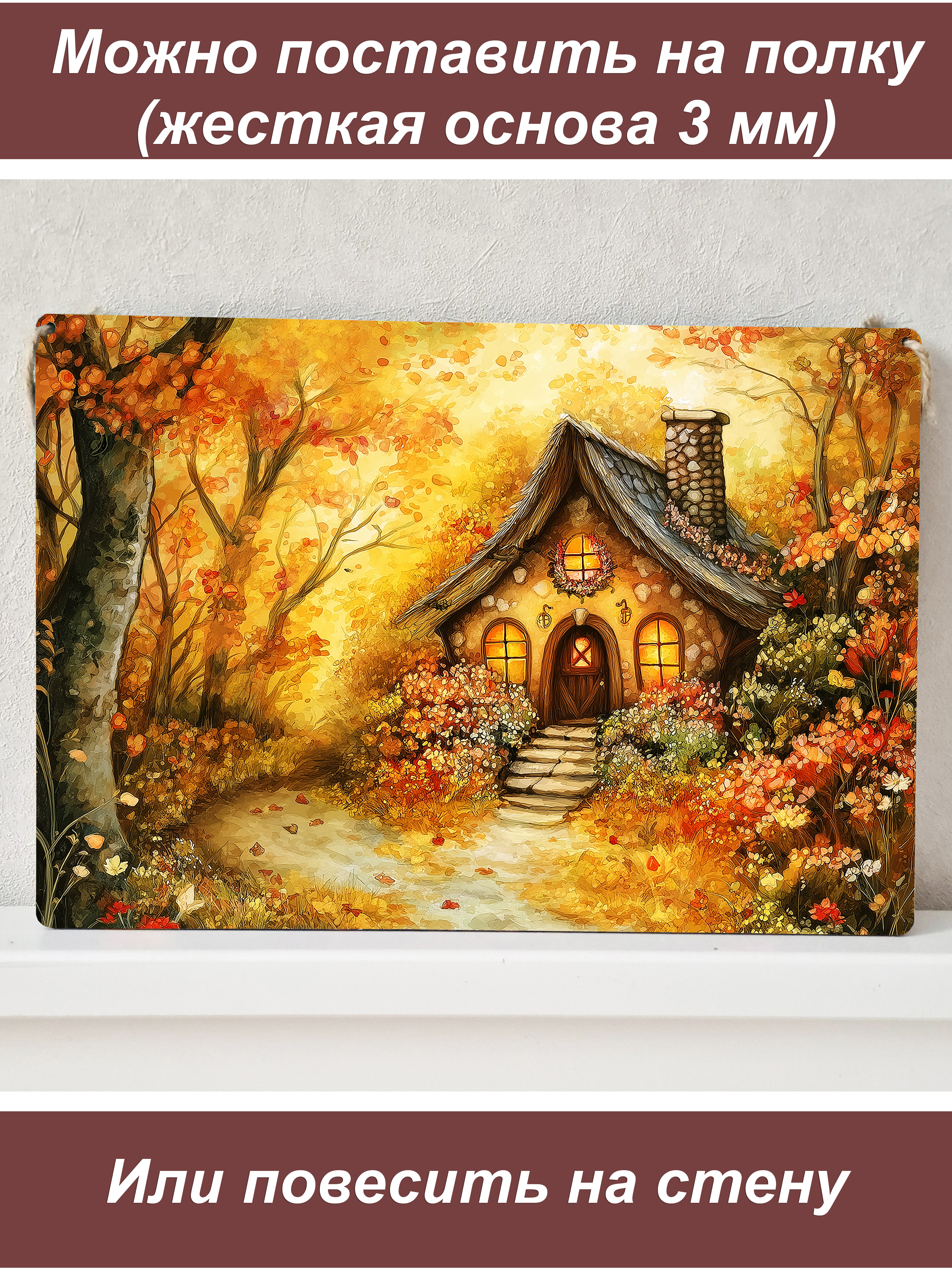 Стильные интерьерные картины на стену формата А4 – это идеальное решение для быстрого и эффектного обновления вашего интерьера. Декоративный постер напечатаны на жесткой основе – высококачественном ХДФ (оргалите), что придает изделию солидный вес, благородный вид и износостойкость. В отличие от обычных постеров на бумаге, эти панно не мнутся и не теряют форму. Не требует оформления в багет или поиска рамки: картина полностью готова к размещению на стене или на полке. Каждая картина небольшого размера (примерно А4) универсальна в размещении: вы можете повесить мини-панно на стену с помощью крепления (веревка) или просто поставить на полку, комод или рабочий стол. При желании можно крепить к стене, используя двусторонний скотч (в комплект не входит). В ассортименте представлены разнообразные сюжеты, которые впишутся в любой дизайн: Огромный выбор сюжетов! В ассортименте представлены тысячи изображений на любой вкус: Природа и пейзажи: величественные горы, безмятежные озера и реки, густые леса, бескрайние поля. Животные: реалистичные портреты собак, кошек, грациозных лошадей, благородных волков, а также трогательные щенки. Цветы и натюрморты: яркие пионы, нежные полевые цветы, сочные композиции для уюта на кухне или в гостиной. Морская тематика: штормовое море, закаты на побережье, парусники и романтика волн. Архитектура и уют: живописные коттеджи, деревенские домики, городские зарисовки. Фэнтези и магия: загадочные эльфы, могущественные драконы, прекрасные девушки в волшебных мирах. Такие постеры на жесткой основе станут отличным подарком или дополнением к любому интерьеру. Сочетайте несколько штук в коллаже для создания уникальной галереи на стене, можно легко создать триптих - в ассортименте достаточный выбор, чтобы подобрать декорации в одном стиле. "