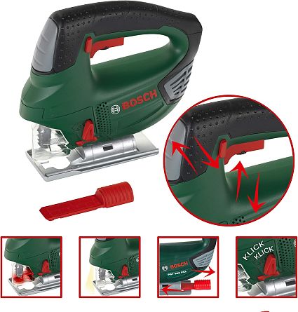 - Световые эффекты: При активации игрушка имитирует «искры», которые возникают при работе настоящего лобзика.