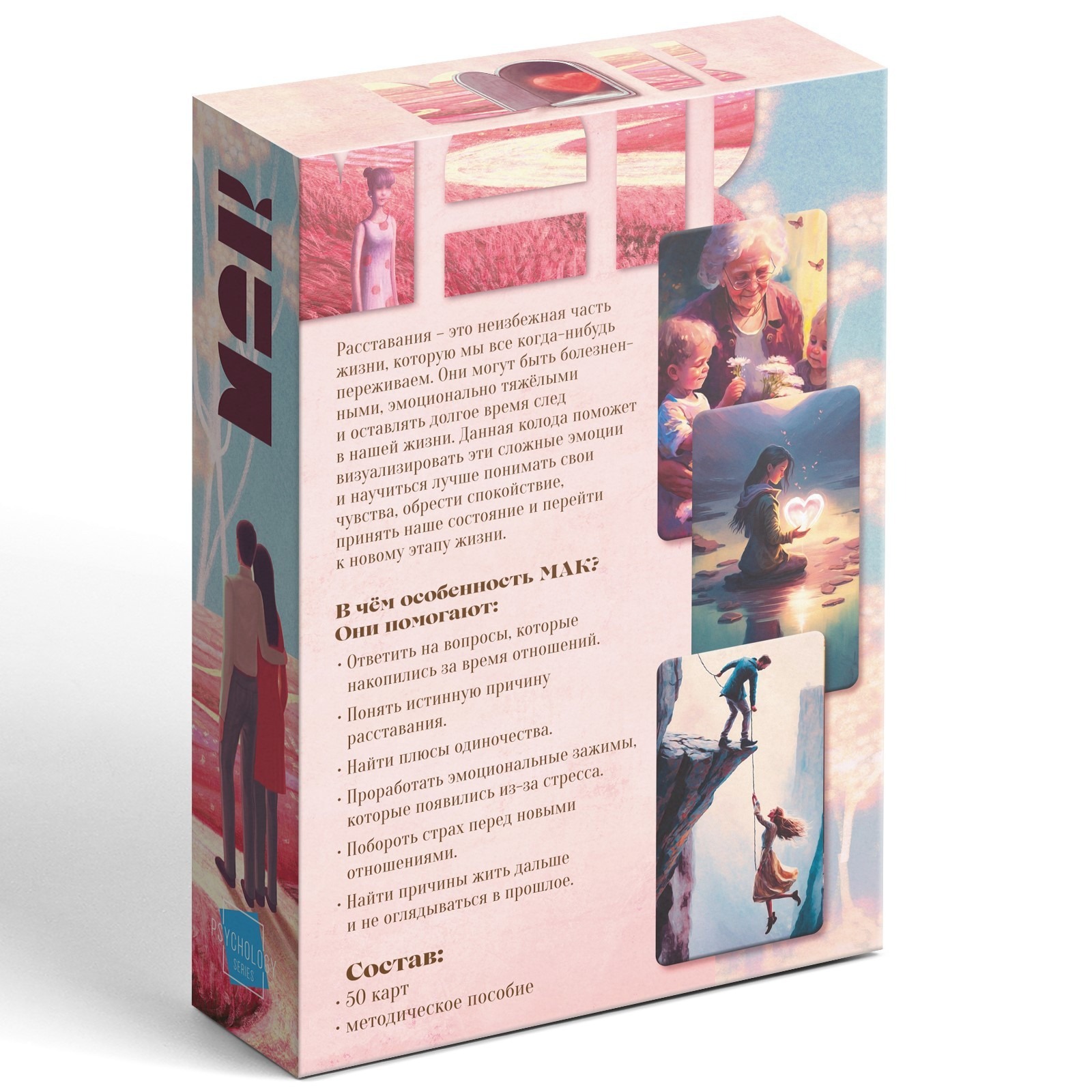 Психологические МАК карты широко используются психологами, коучами, тренерами и специалистами по личностному развитию, а также подходят для самостоятельной работы. Каждая карта содержит образ или метафору, которые помогают раскрыть внутренние переживания, взглянуть на ситуацию с новой стороны и найти решение.Преимущества карт