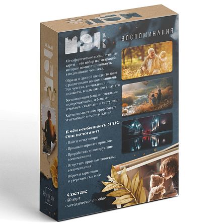 Карты помогают мягко работать с подсознанием, находить ответы на внутренние вопросы, анализировать эмоции и жизненные ситуации.Психологические МАК карты широко используются психологами, коучами, тренерами и специалистами по личностному развитию, а также подходят для самостоятельной работы. Каждая карта содержит образ или метафору, которые помогают раскрыть внутренние переживания, взглянуть на ситуацию с новой стороны и найти решение.