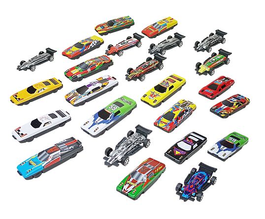 - Комплектация: 24 машинки различного дизайна и гоночного типа.