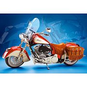 Пазл с изображением красного винтажного мотоцикла на синем фоне. Эффектный и яркий.