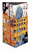 Пробита и помята лицевая сторона коробки. Пазл вскрыт, пакет с деталями не поврежден