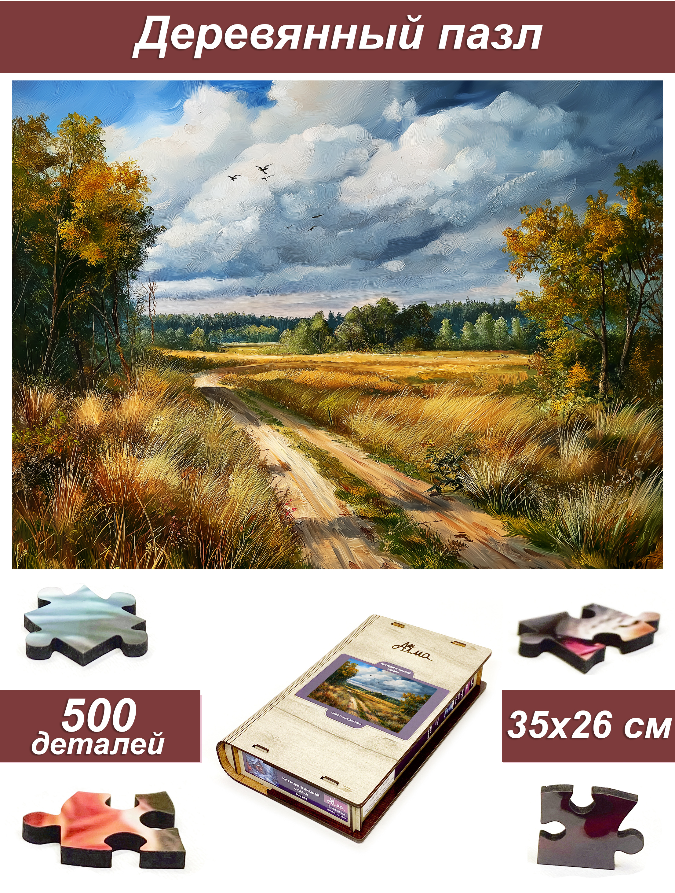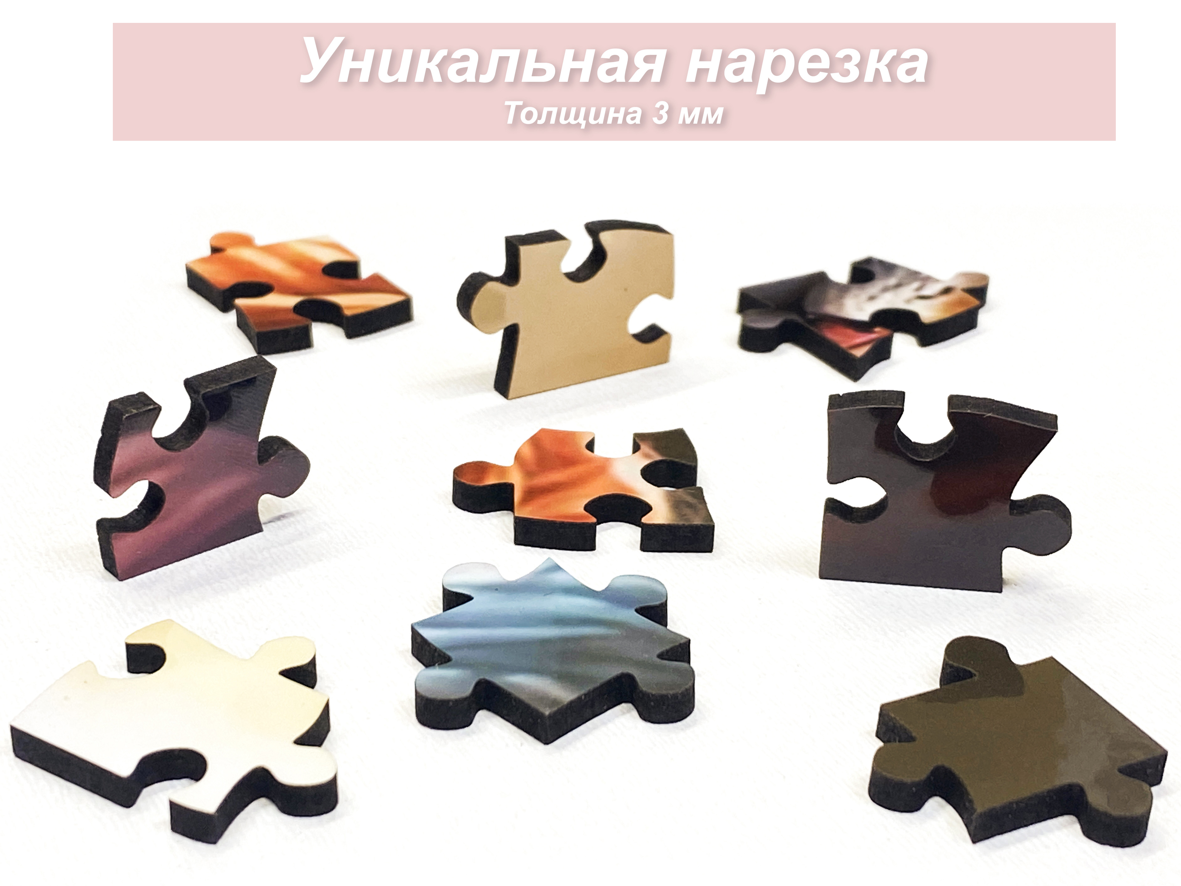 Деревянный фигурный пазл бренда 1001puzzle - уникальная настольная игра, прекрасный подарок для взрослых и для детей. Деревянная головоломка с нестандартной нарезкой состоит из 500 ярких фигурных деталей. Каждый элемент пазла - уникален, что делает сборку еще увлекательнее. Пазлы из дерева отличаются от обычных картонных надежностью и долговечностью. Кроме того, они станут прекрасным украшением интерьера, будет радовать не только в момент сборки, но и после. В нашем ассортименте есть и яркие, веселые пазлы, есть и имитация картин, пейзажи, домашние и дикие животные. Можно подобрать рисунок на любой вкус. Пазл упакован в уникальную коробку - она же служит местом для сборки, а, при желании, вы можете использовать планшет для сборки как рамку, чтобы закрепить картину и повесить ее на стену. Все пазлы мы упаковываем дополнительно в надежную транспортировочную коробку и, очень надеемся, что она поможет пережить нашему товару сложную дорогу к вам.
