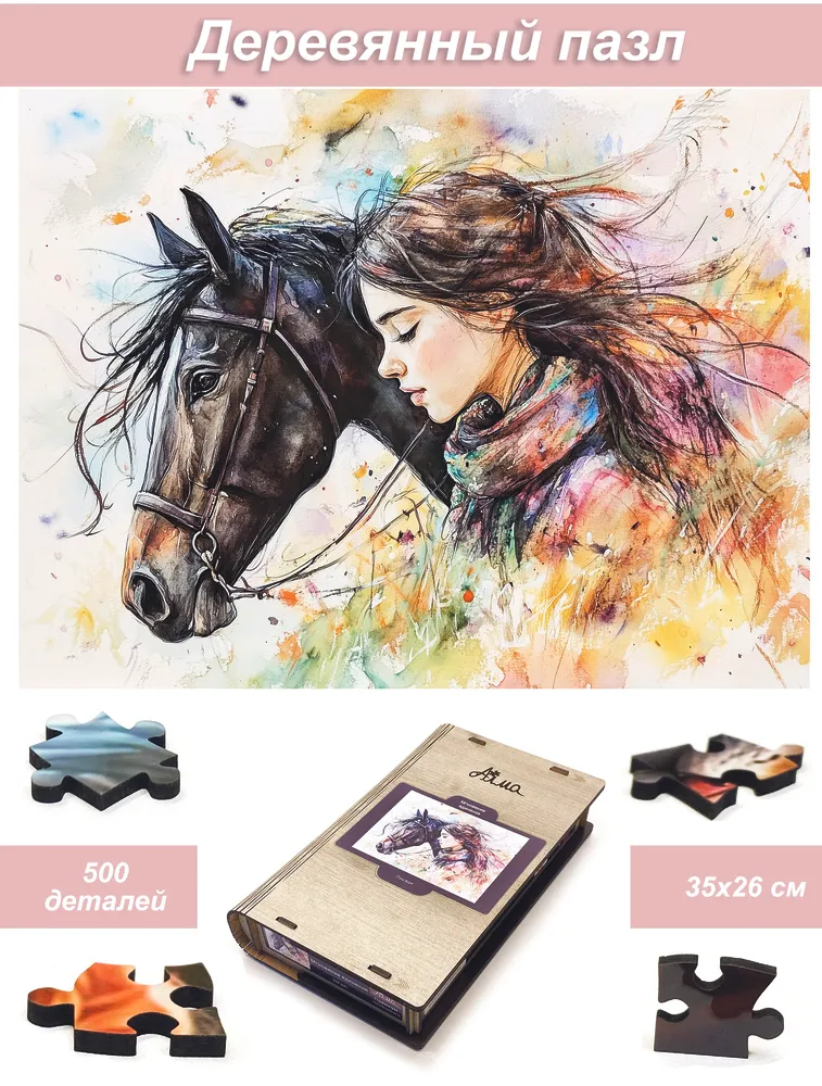 Деревянный фигурный пазл бренда 1001puzzle - уникальная настольная игра, прекрасный подарок для взрослых и для детей. Деревянная головоломка с нестандартной нарезкой состоит из 500 ярких фигурных деталей. Каждый элемент пазла - уникален, что делает сборку еще увлекательнее. Пазлы из дерева отличаются от обычных картонных надежностью и долговечностью. Кроме того, они станут прекрасным украшением интерьера, будет радовать не только в момент сборки, но и после. В нашем ассортименте есть и яркие, веселые пазлы, есть и имитация картин, пейзажи, домашние и дикие животные. Можно подобрать рисунок на любой вкус. Пазл упакован в уникальную коробку - она же служит местом для сборки, а, при желании, вы можете использовать планшет для сборки как рамку, чтобы закрепить картину и повесить ее на стену. Все пазлы мы упаковываем дополнительно в надежную транспортировочную коробку и, очень надеемся, что она поможет пережить нашему товару сложную дорогу к вам.
