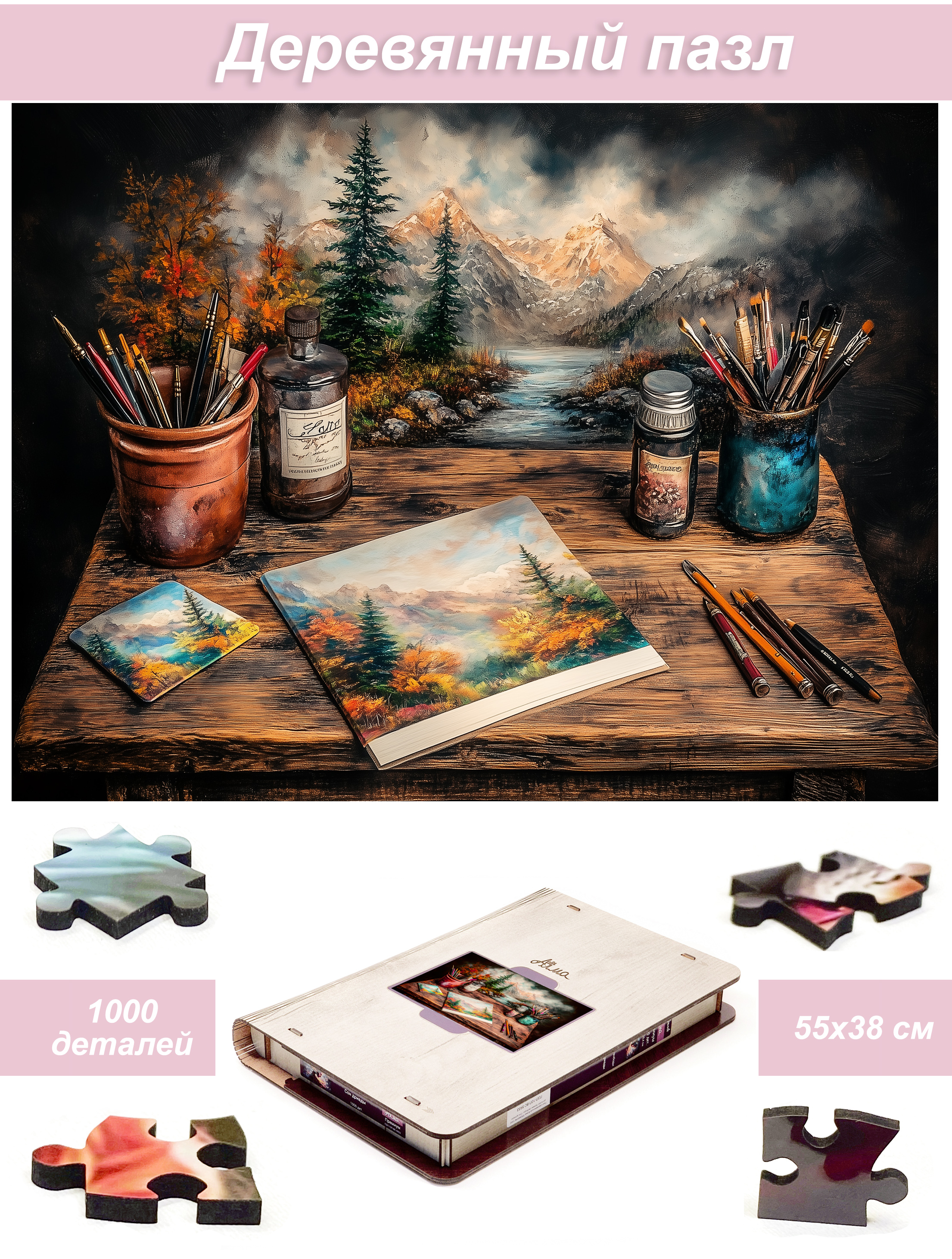 Деревянный фигурный пазл бренда 1001puzzle - уникальная настольная игра, прекрасный подарок для взрослых и для детей. Деревянная головоломка с нестандартной нарезкой состоит из 500 ярких фигурных деталей. Каждый элемент пазла - уникален, что делает сборку еще увлекательнее. Пазлы из дерева отличаются от обычных картонных надежностью и долговечностью. Кроме того, они станут прекрасным украшением интерьера, будет радовать не только в момент сборки, но и после. В нашем ассортименте есть и яркие, веселые пазлы, есть и имитация картин, пейзажи, домашние и дикие животные. Можно подобрать рисунок на любой вкус. Пазл упакован в уникальную коробку - она же служит местом для сборки, а, при желании, вы можете использовать планшет для сборки как рамку, чтобы закрепить картину и повесить ее на стену. Все пазлы мы упаковываем дополнительно в надежную транспортировочную коробку и, очень надеемся, что она поможет пережить нашему товару сложную дорогу к вам.