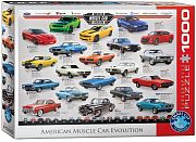 Пазл-коллаж, демонстрирующий развитие известной американской марки машины. В разные годы - разные дизайны, разный цвет, с разных сторон, плюс краткая информация об автомобиле.