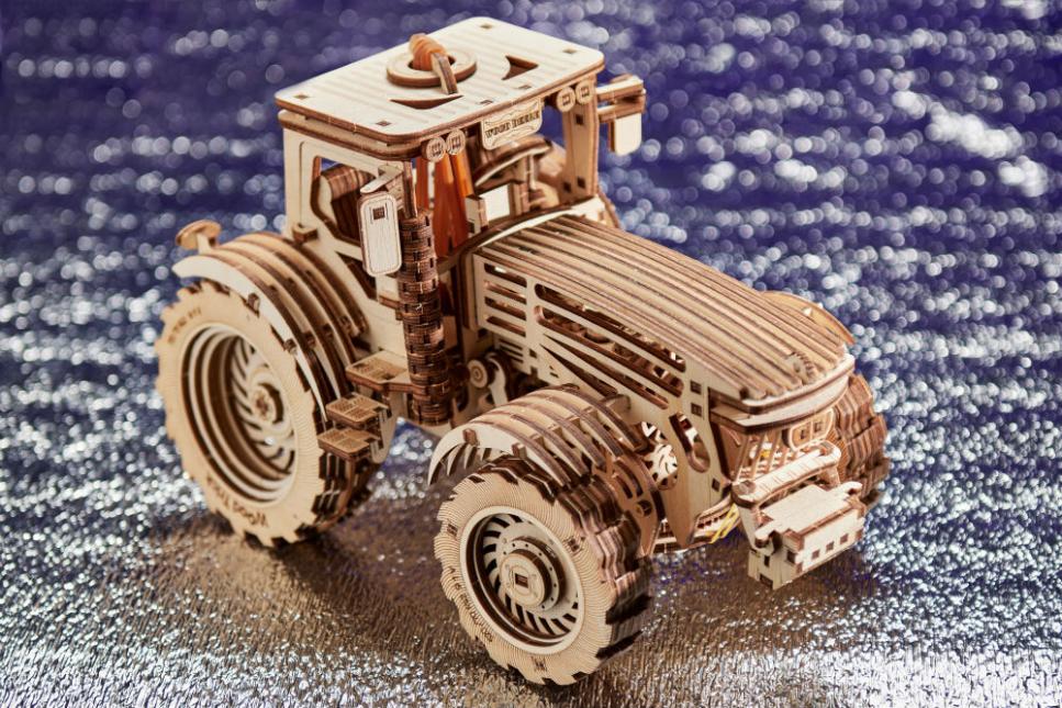 Все механические модели Wood Trick собираются из разнообразных деталей (экологически чистая фанера), которые «выдавливаются» из листов в наборе. При сборке ни ножницы, ни клей не нужны. Один из предложенных производителем вариантов сборки и стыковки деталей является запатентованным.