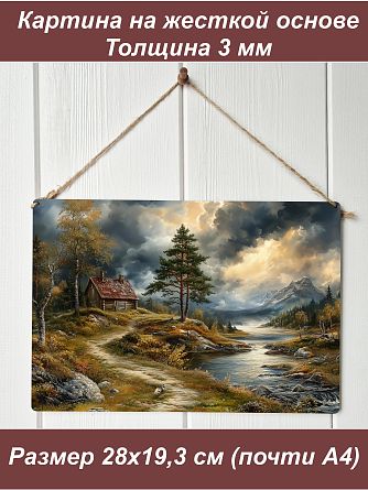Стильные интерьерные картины на стену формата А4 – это идеальное решение для быстрого и эффектного обновления вашего интерьера. Декоративный постер напечатаны на жесткой основе – высококачественном ХДФ (оргалите), что придает изделию солидный вес, благородный вид и износостойкость. В отличие от обычных постеров на бумаге, эти панно не мнутся и не теряют форму. Не требует оформления в багет или поиска рамки: картина полностью готова к размещению на стене или на полке. Каждая картина небольшого размера (примерно А4) универсальна в размещении: вы можете повесить мини-панно на стену с помощью крепления (веревка) или просто поставить на полку, комод или рабочий стол. При желании можно крепить к стене, используя двусторонний скотч (в комплект не входит). В ассортименте представлены разнообразные сюжеты, которые впишутся в любой дизайн: Огромный выбор сюжетов! В ассортименте представлены тысячи изображений на любой вкус: Природа и пейзажи: величественные горы, безмятежные озера и реки, густые леса, бескрайние поля. Животные: реалистичные портреты собак, кошек, грациозных лошадей, благородных волков, а также трогательные щенки. Цветы и натюрморты: яркие пионы, нежные полевые цветы, сочные композиции для уюта на кухне или в гостиной. Морская тематика: штормовое море, закаты на побережье, парусники и романтика волн. Архитектура и уют: живописные коттеджи, деревенские домики, городские зарисовки. Фэнтези и магия: загадочные эльфы, могущественные драконы, прекрасные девушки в волшебных мирах. Такие постеры на жесткой основе станут отличным подарком или дополнением к любому интерьеру. Сочетайте несколько штук в коллаже для создания уникальной галереи на стене, можно легко создать триптих - в ассортименте достаточный выбор, чтобы подобрать декорации в одном стиле. "