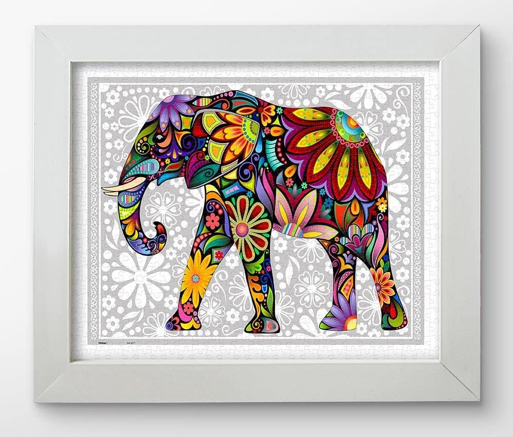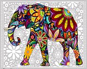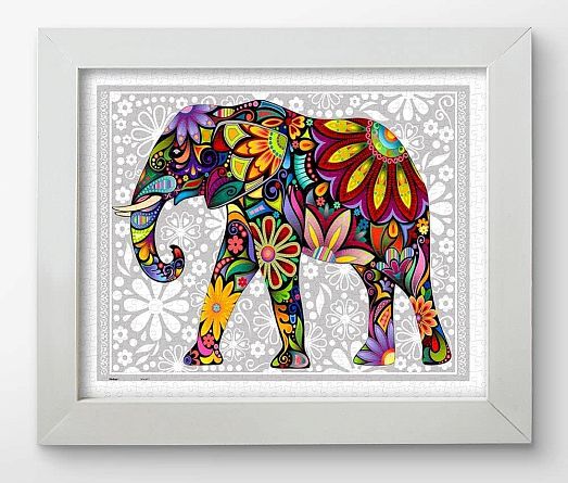 Силуэт слона, выполненный цветными цветами на фоне черно-белых цветов. То ли слон раскрашивает цветы, то ли цветы слона.