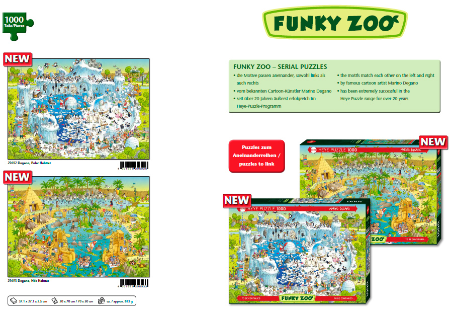 Серия мультяшных пазлов Heye Funky Zoo от итальянского художника Марино Дегано (Marino Degano) понравится поклонникам пазлов самого разного возраста. Не думайте, что такие картины рассчитаны только на детей. Можно не сомневаться: собирать их понравится и взрослым!